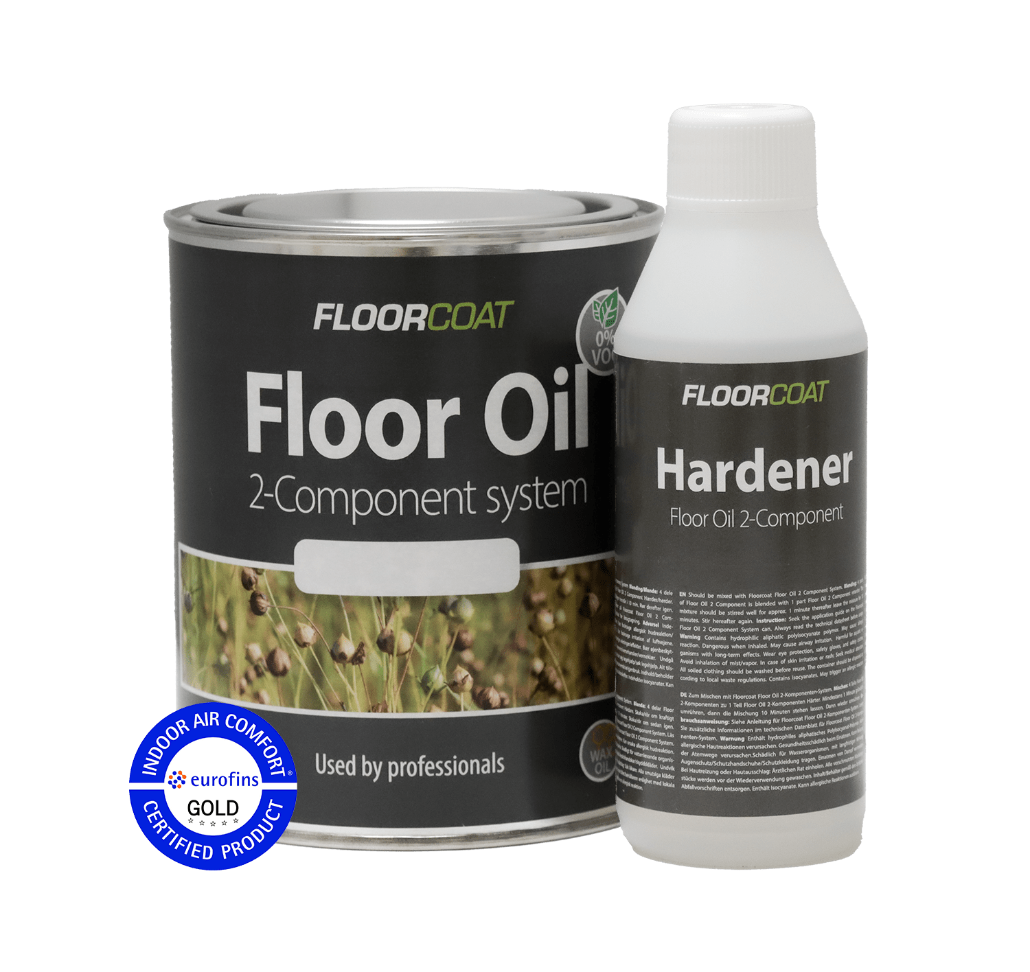 Kahekomponentne põrandaõli on lenduvate orgaaniliste ühendite (VOC) vaba õli, mis on väga õrn ja madala heitkogusega ning seetõttu ei avalda see sisekliimale kahjulikku mõju. Kõvendiga koostoime parandab õli toimet ja tagab kiirema kõvenemise. Pind on täielikult töödeldud pärast ühekordset pealekandmist